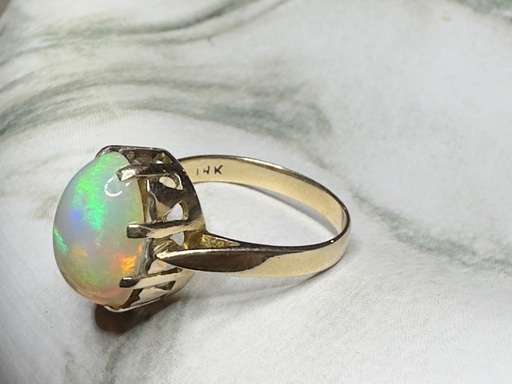 5.65ct Ethiopian Opal Cocktail Ring 14k Yellow Gold Size 6.5 1960's Vintage