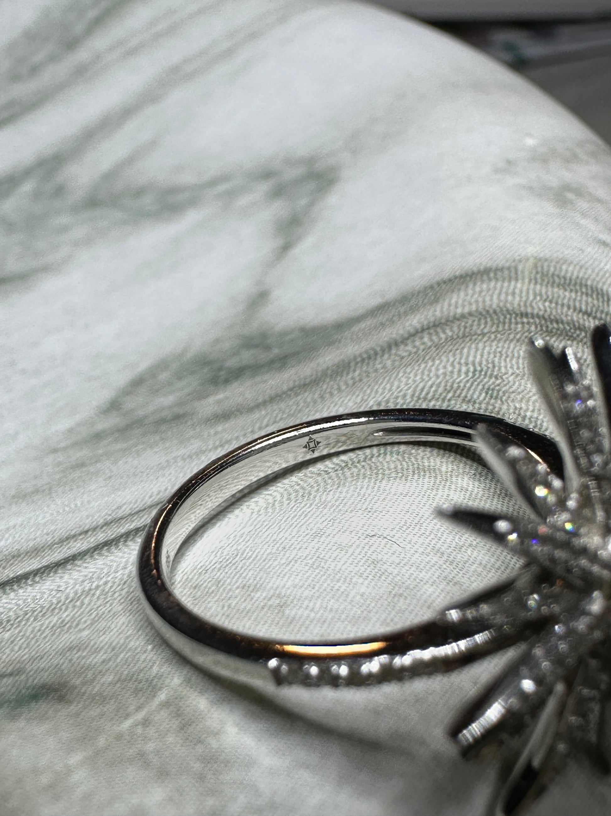 Diamond Celestial Starburst Ring Estate 14k White Gold Size 6.75 Star Jewelry